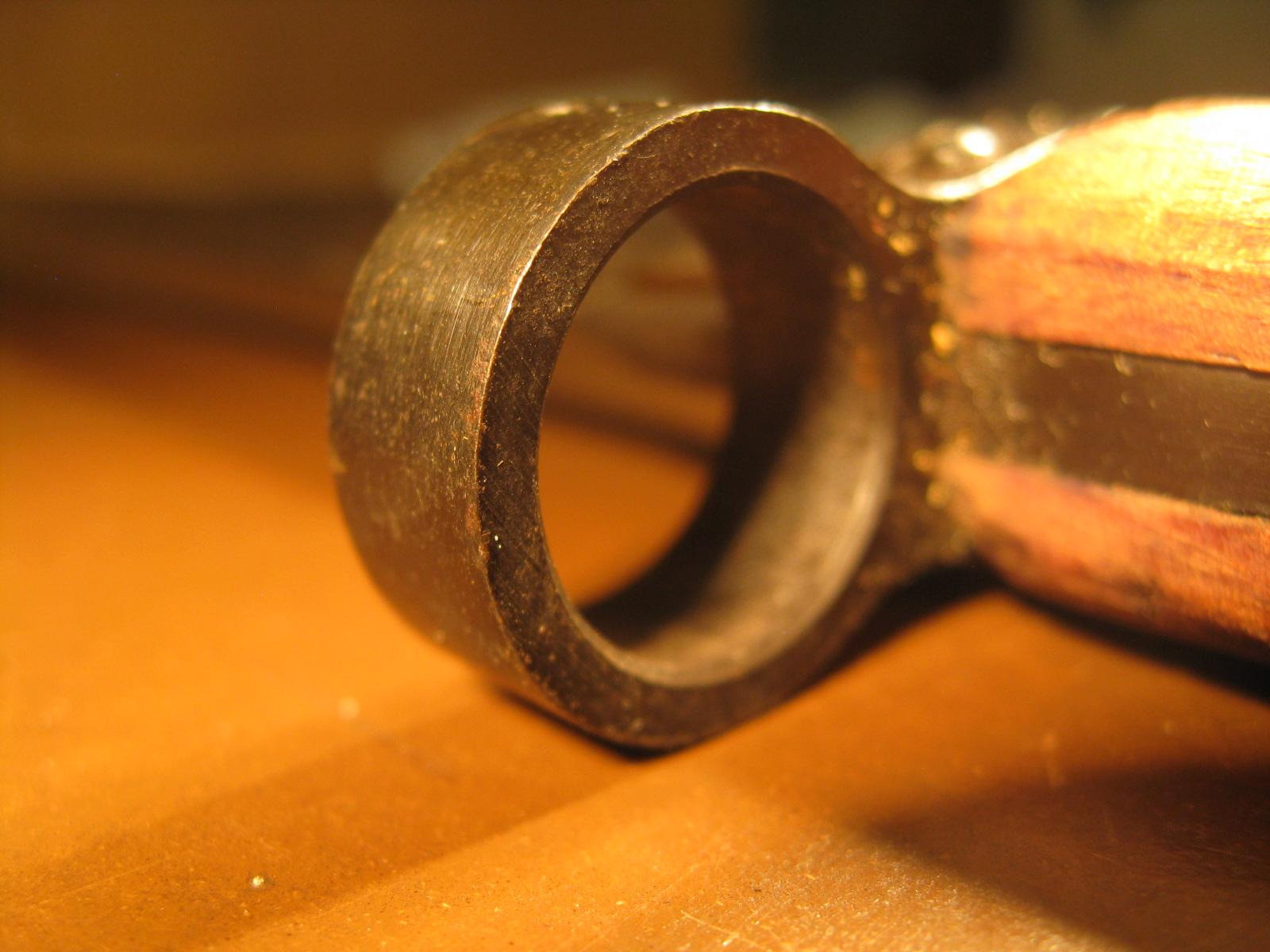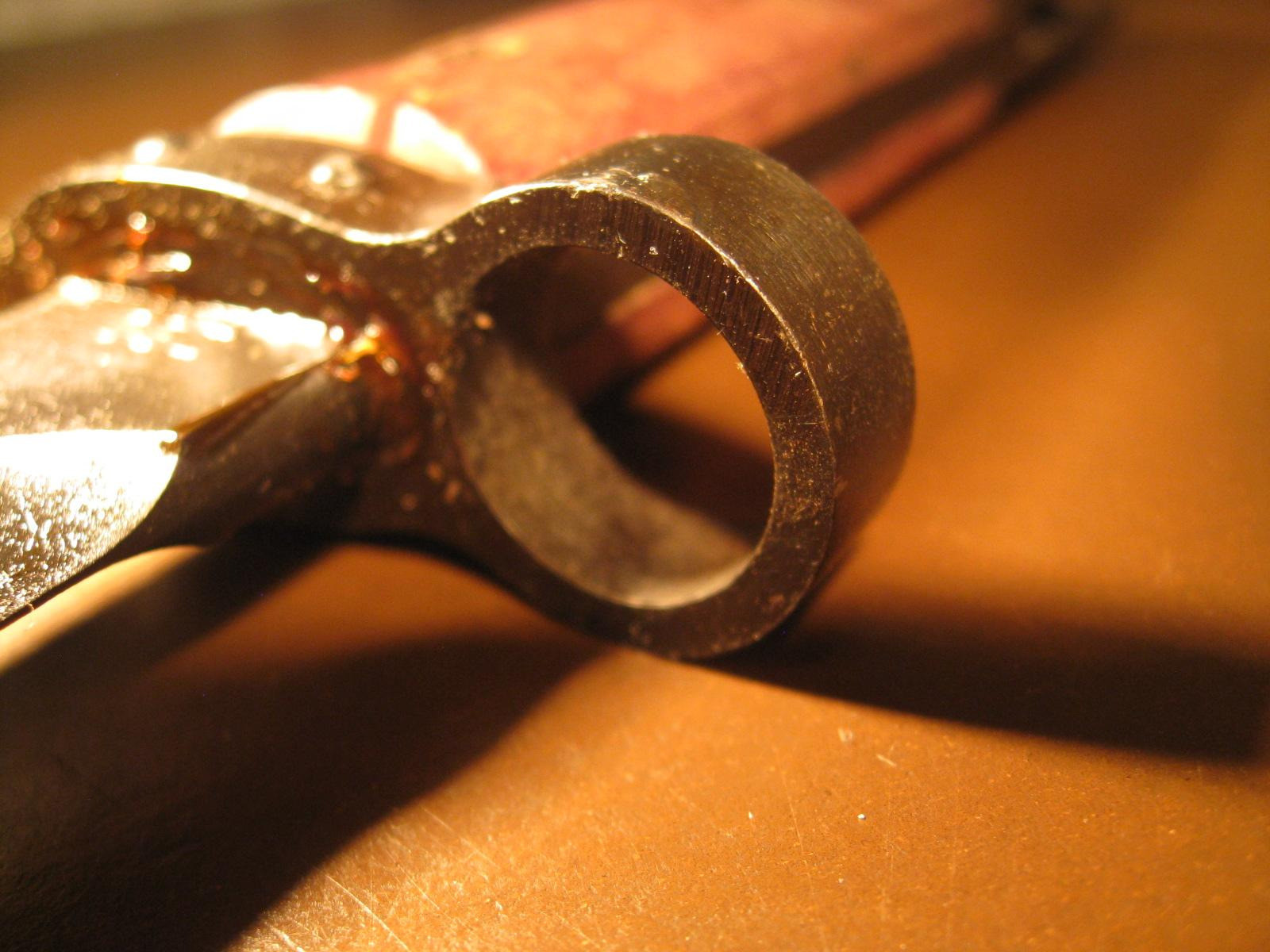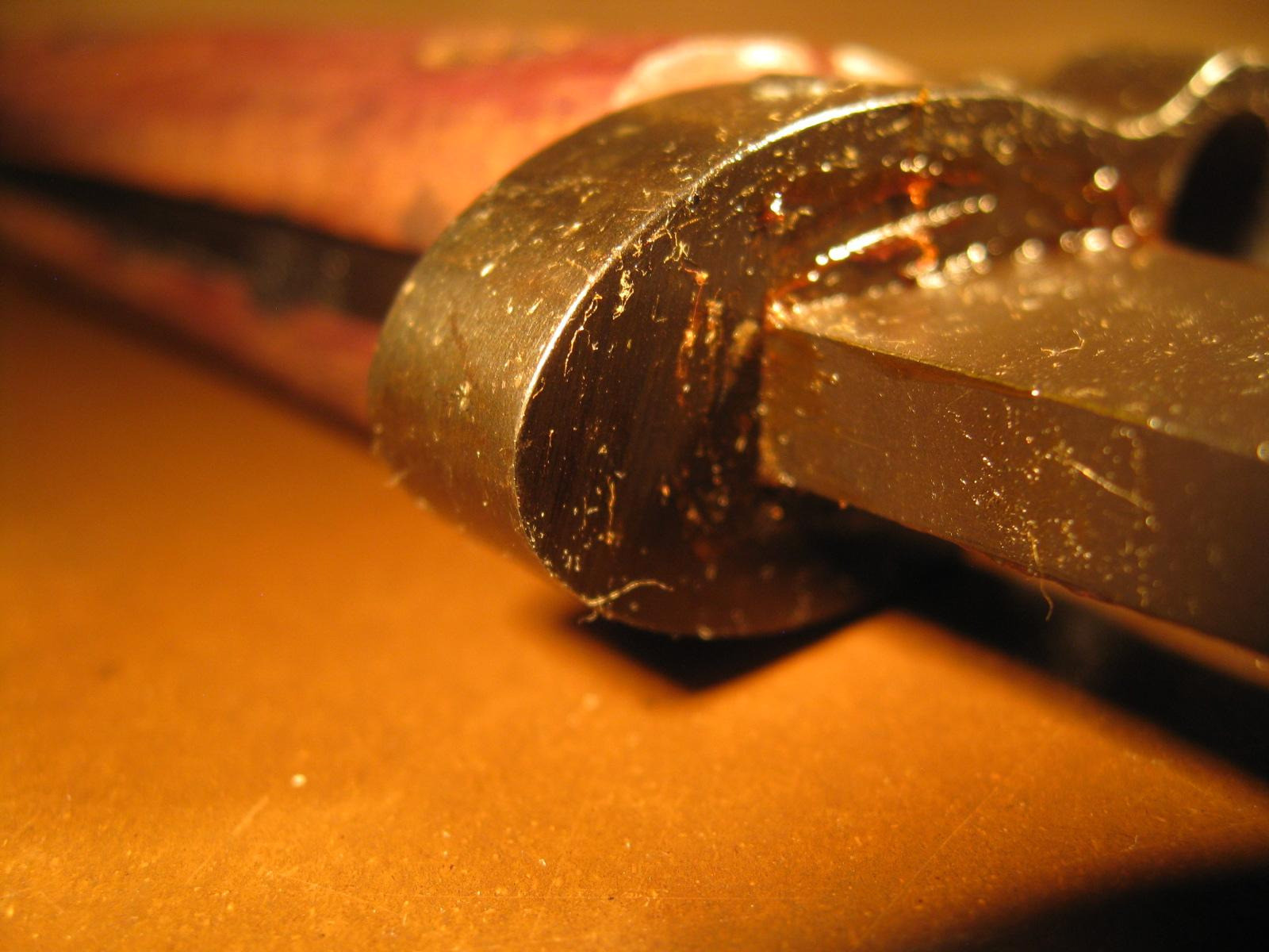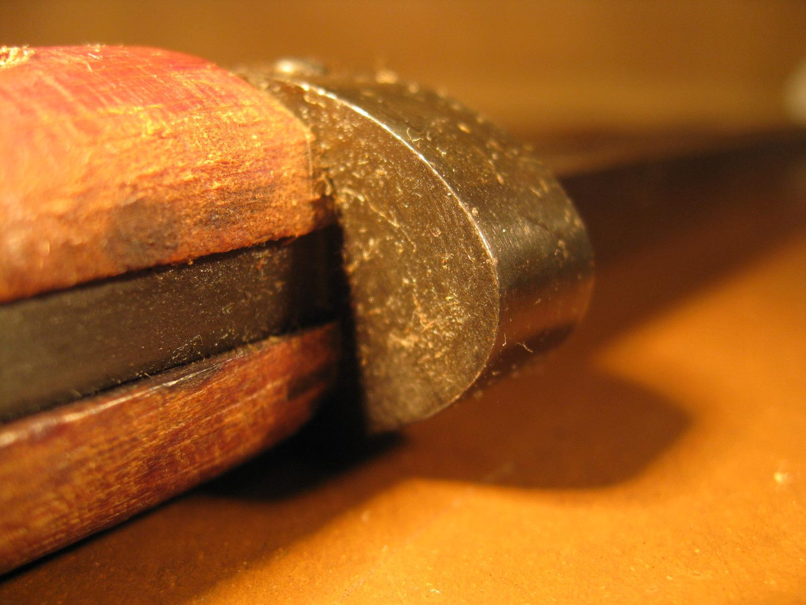 Die Klinge flutscht in die Scheide und sitzt fest wie es sein soll.