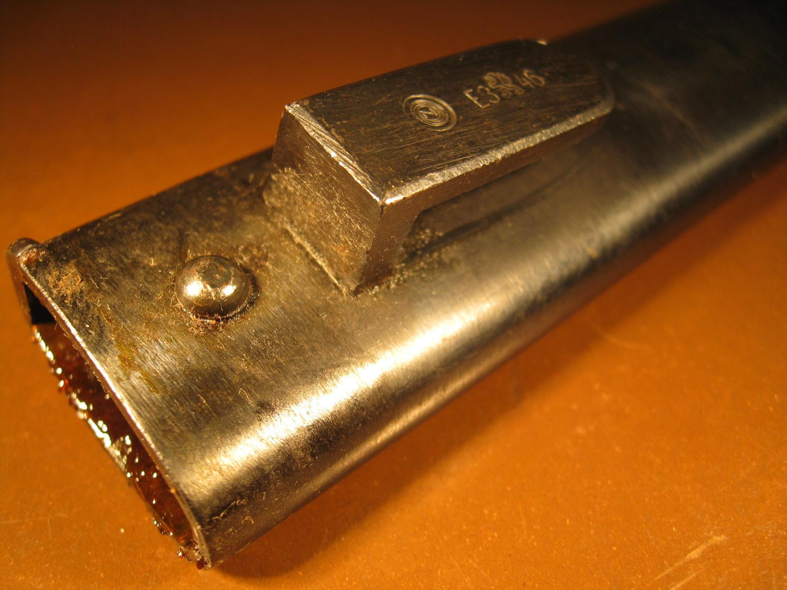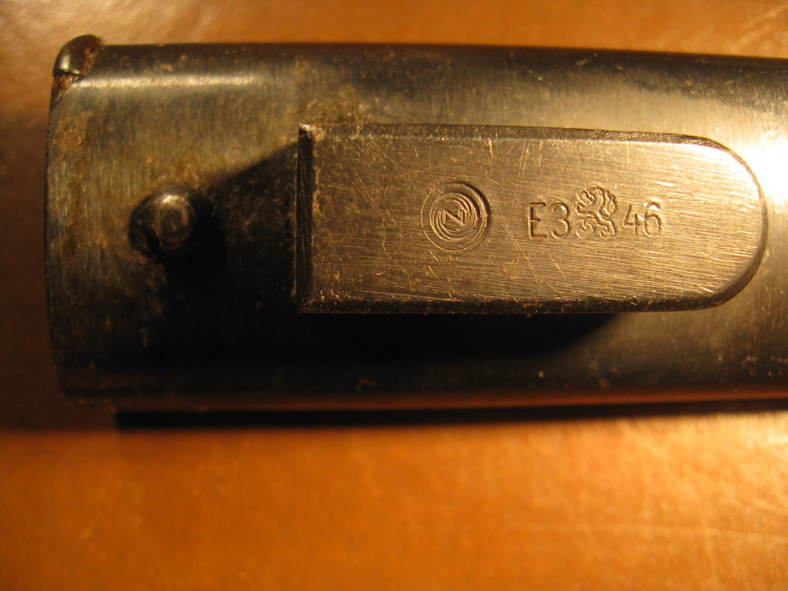 Tragehaken: E3 (Löwe) 46 (E3= BRNO, Brünn--46 Produktionsjahr wie auf Bajonett)