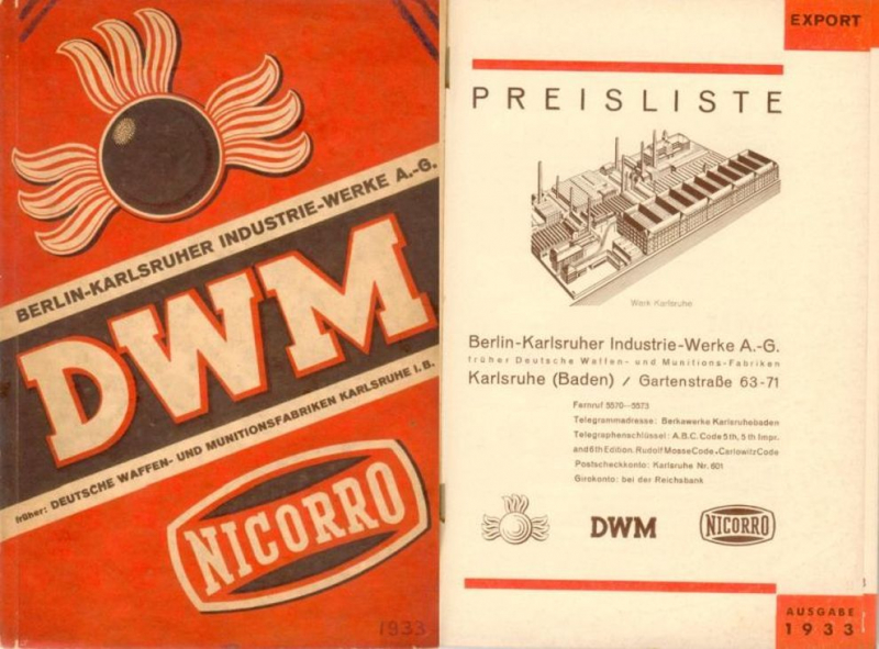Preisliste der Berlin-Karlsruher Industrie-Werke 1933, früher DWM, Karlsruhe