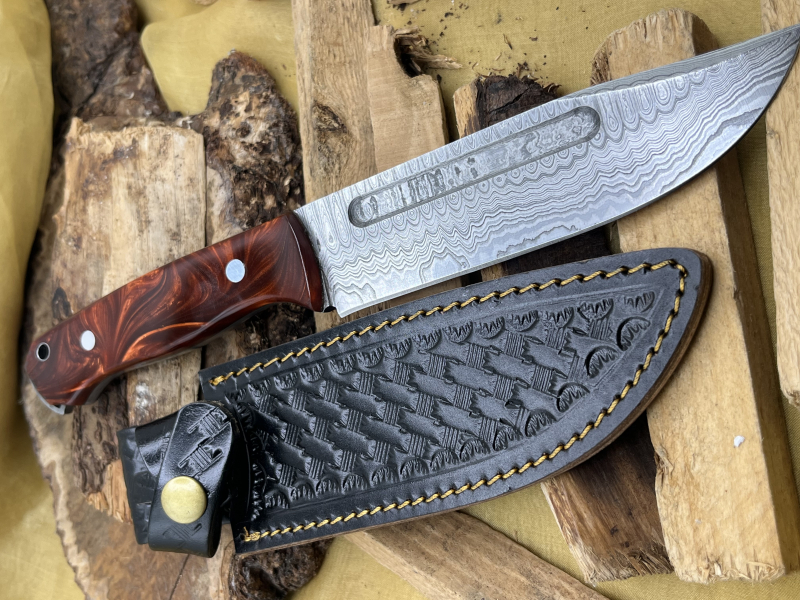 Handgefertigtes Damast-Bowiemesser. Jagdmesser. Survivalmesser. Outdoormesser. Mit Scheide.