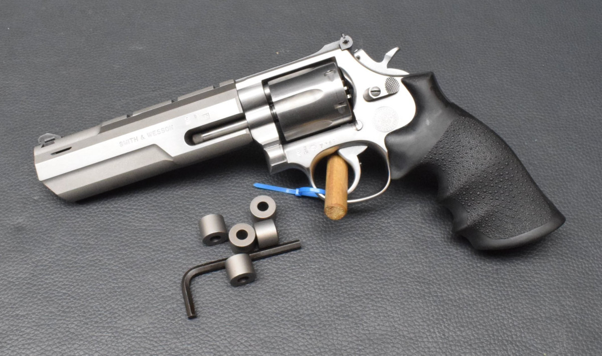 SA/DA Abzugssystem, L-Rahmen, 6-Schuss Trommel, unter dem Lauf 6 Wechsellaufgewichte.