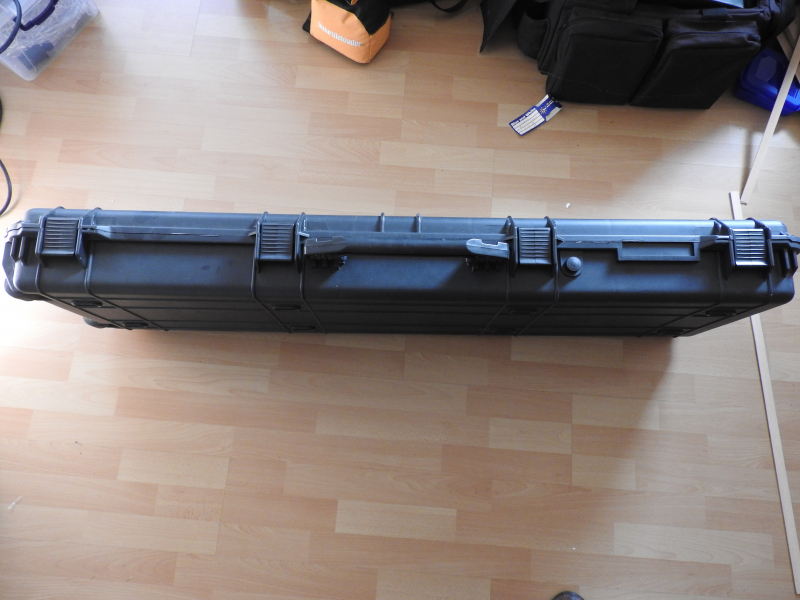 Biete Langwaffen-Hartschalenkoffer in den Maßen, Außen: 135cm Länge, 42cm Höhe und 18 cm Dicke. Die Innenmaße sind: 130cm X 35 cm X 16 cm. Der Koffer hat ein Entlüftungsventil zum Druckausgleich. An den Schmalseiten befinden sich Rollen, bzw. ein Zuggriff. Im Inneren ist eine Noppenschamgummieinlage im Decken sowie eine vorgeschnittene Schaumgummieinlage in der Unterseite des Koffers zur Anpassung an die Waffe. Der Koffer wurde nur 3mal genutzt. Neupreis war 190,00 Euro.