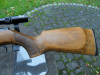 Verkaufe wie abgebildet dieses gebrauchte Luftgewehr mit „F“ im Fünfeck. Hersteller Diana Modell 35 !!! Zustand äußerlich stärker gebraucht, aber technisch einwandfrei. Links hinten am Metallgehäuse bzw. dem Kompressionsraum steht das Herstellungsjahr, vermutlich 12 - 78 könnte aber auch 72 oder 76 sein, ich kann es nicht genau erkennen. Der Gummiring, wo der Diabolo eingelegt wird, scheint ebenfalls im TOP Zustand (siehe Bild) zu sein. Technisch und Funktion einwandfrei. Ich habe es auf 10 Meter mit ca. 1 cm Hochschuss eingeschossen (siehe Anschussscheibe, die Schüsse unten waren die ersten beim Einschiessen nach dem Montieren des ZF, die fünfer Schussgruppe oben war nach dem Einschiessen dann). Äußerlich macht es keinen schönen Eindruck. Die Brünnierung ist am Lauf und an Stellen am Gehäuse abgegriffen und leichte Flugroststellen sind teileise zu erkennen, aber keine großen oder starken Rostnarben. Der Höhenverstellring fehlt, es schießt aber auch so auf 10 Meter über Kimme und Korn Fleck! Am Schaft ist an einigen Stellen oberflächlich der Lack ab. Im Großen und Ganzen ist es aber echt O.K. - man kann sofort damit loslegen!!! Es schießt gut!!!Wer die beschriebenen „Mängel“ nicht akzeptieren kann, bietet bitte auch nicht drauf….Mit Etwas Geschick lässt sich daraus wieder einSchmuckstück herstellen.. Schaft abziehen und Ölen, neu brünnieren etc...