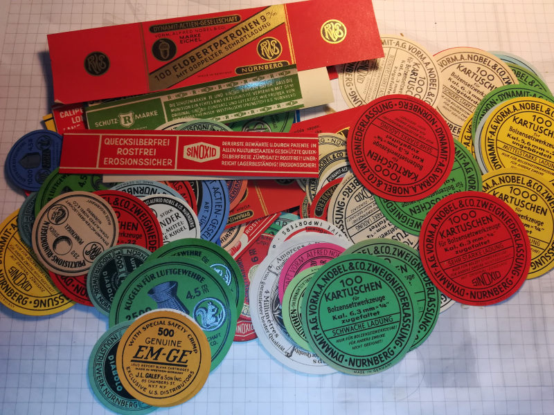 Patronen Etikett,Nürnberg,Aufkleber,Sammlung,Konvolut,Patronenschachtel,RWS