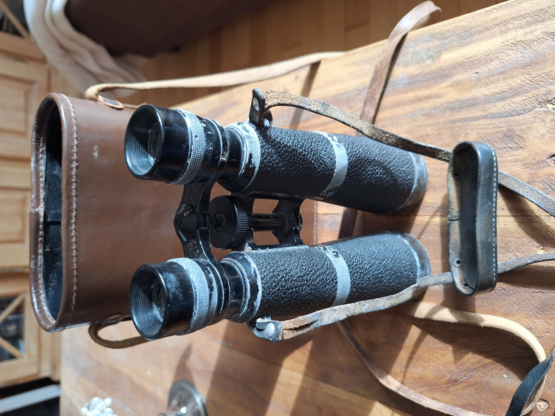 Aus einem Nachlaß biete ich diesen alten Feldstecher an. Leider sind die Metallteile korrodiert (s. Fotos), die beweglichen Teile sind schwergängig. Beim Blick durch die Optik fallen mir keine Schäden oder Beeinträchtigungen auf.