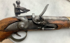 Sie Bieten auf ein Afghanisches „Jezail“ Kein aufgemotzte Touristendekoration, sondern ein seriöses Glattrohrgewehr mit Beluchistani Schaftform. Lauf mit eingelegtem Draht, festgehalten mit winzigen Einkerbungen, anscheinend aus Gold (reagiert jedenfalls nicht auf Messingbeize). Originaler, funktionsfähiger „Brown Bess“ Steinschloss: Tower und G.R. sind graviert, nicht gestempelt!