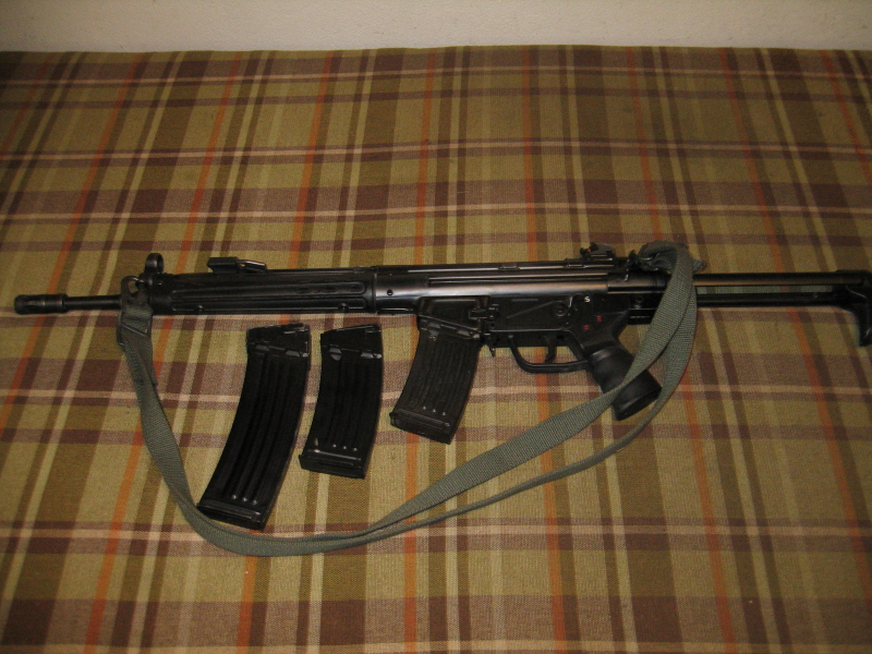 Die Schäfte sind Umbauten vom G3. Magazine (bis auf das dazugehörende) sind abgeändert (Lippen abgeschliffen). Für Deko.
