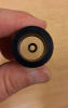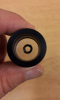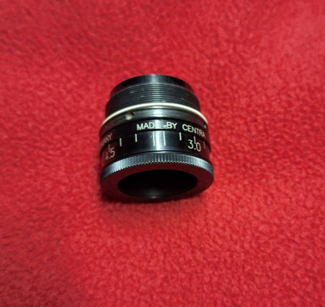 Verstellbares, freistehendes Iris-Glasringkorn von Centra für Korntunnel mit Gewinde M 22. Der Verstellbereich geht von 2,8 – 4,8. Von 2,8 – 4,2 ist das Korn kreisrund, bei größerem Durchmesser sind 1-2 Lamellen sichtbar
