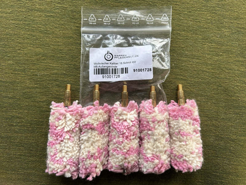 5 Wollwischer für Flinten für Kaliber 16 mit M5-Außengewinde, wie NEU, ungebraucht, geeignet für Putzstöcke mit 1/8-Innengewinde; Besichtigung der Wollwischer nach Absprache selbstverständlich gerne möglich, weitere Bilder und Informationen gerne auf Anfrage, Privatauktion: keine Rücknahme, Preisverhandlung, Gewährleistung, Haftung, Abholung der ersteigerten Wollwischer vor Ort gegen Barzahlung möglich.