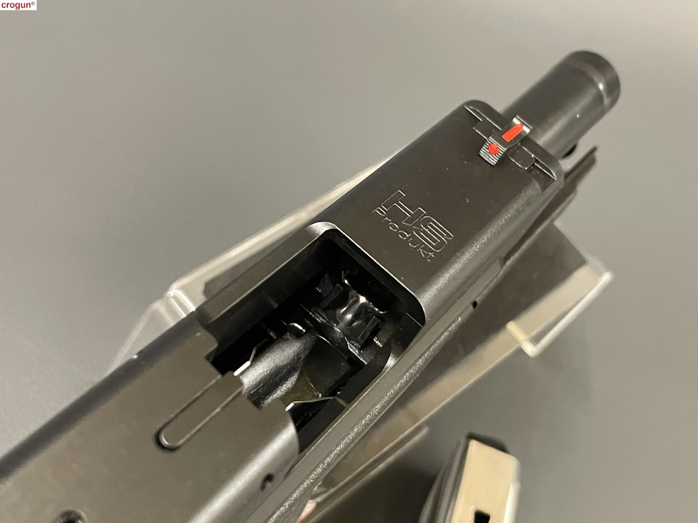 Visierung: Kimme und Korn Stahl mit Punkteinlagen bzw. Fibereinsatz, verschiebbar