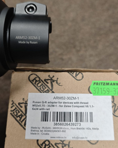 Rusan QR-Adapter für Wärmebildgeräte mit M52x0,75 Gewinde und Gläser mit 30 mm Objektivdurchmesser (Außen) und Zeiss-Schiene