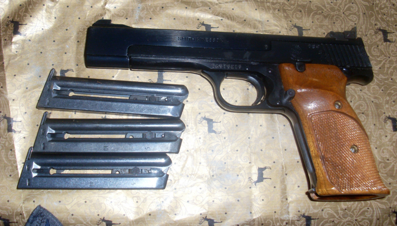 Smith & Wesson KK Matchpistole Mod41 22lr ,klassischer Matchpistole 5,5 Zoll ,guter Zustand Lauf blank mit Orginal griffschalen ,3 Ersatzmagazin ,sehr gepflegte Waffe
