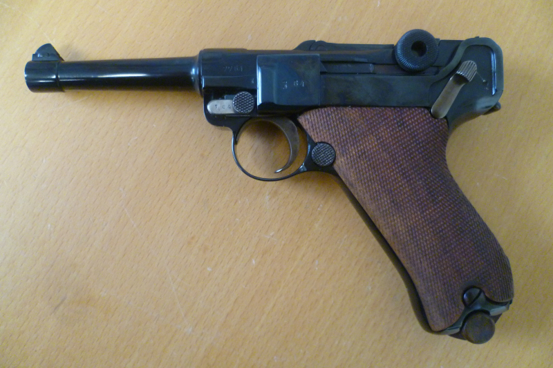 Gefalzt, vernickelt und mit Holzboden und Seriennummer (diese abweichend zur Waffe ).