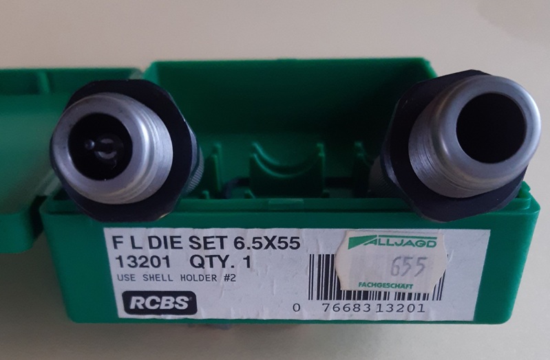 Biete hier einen gebrauchten, zweiteiligen RCBS-Matritzensatz für die Patrone 6,5x55 SE an. Voll funktionsfähig; Kalibrierung: Volle Länge.