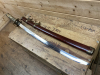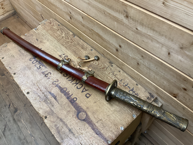 Katana Deko Klingenlänge ca. 62cm, Gesamtlänge ca. 89cm, Messing, Stahl, sehr schöne Holzscheide, guter Zustand siehe Bilder!