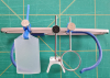 Schießbrille VARGA 2000, Glashalter mit 23 mm (Gewehr) Durchmesser, hochklappbare Abdeckscheibe (30 mm breit), jeweils schwenkbar, seitlich- und höhenverstellbar, Nasensteg verstellbar, gummierte, flexible hellblaue Brillenbügelenden, stabiles Etui blau), gut erhalten
