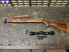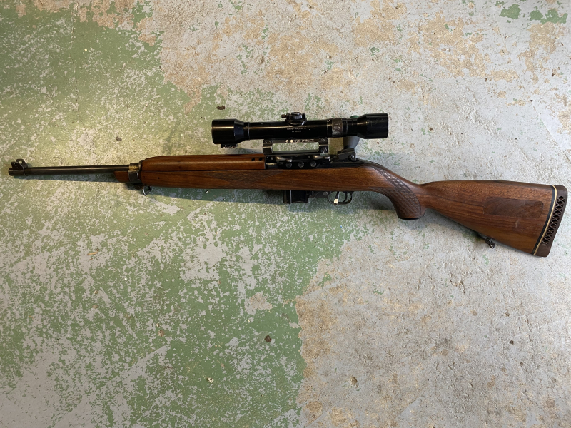 Zum Verkauf steht das abgebildete Konvolut an Ersatz- und Austauschteilen für den halbautomatischen Karabiner der US-Armee im 2. Weltkrieg, dem .30M1 Carbine. Das Hauptstück dabei bildet eine sehr seltene Zielfernrohrmontage, die es ermöglicht auf diese beliebte Waffe ein passendes ZF zu montieren. Es handelt sich dabei um eine seitliche Aufschubmontage. Mit dabei ist ein ebenfalls seltenes und zeitgenössisches ZF von Hensoldt Wetzlar Dialytan 4-fach aus den späten 1950er Jahren mit Absehen 1. Für die seitliche Befestigung müssen nur zwei kleine Löcher gebohrt und mit einem Gewinde versehen werden(siehe Bilder). Dann können problemlos verschiedene Zielfernrohre mit Prismenschine montiert werden. Mit dabei sind die Montage, der jagliche Schaft, umgebautes 5-Schuss-Magazin, das ZF und ein paar Kleinteile. Natürlich ohne das abgebildete Gewehr. Dies dient nur der Verdeutlichung der Montage. Ein echtes Sammlerstück und sehr selten.