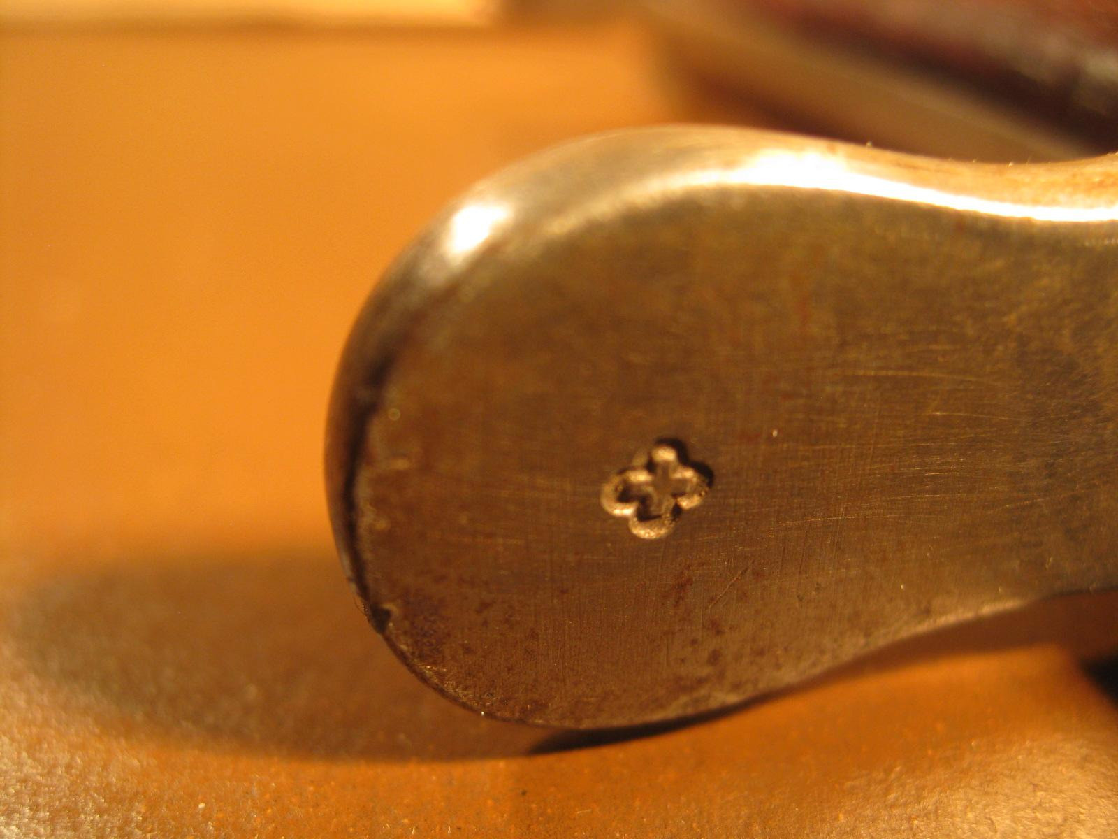Schweizer Kreuz unten an Parierstange und (Scheiden-)Knopf