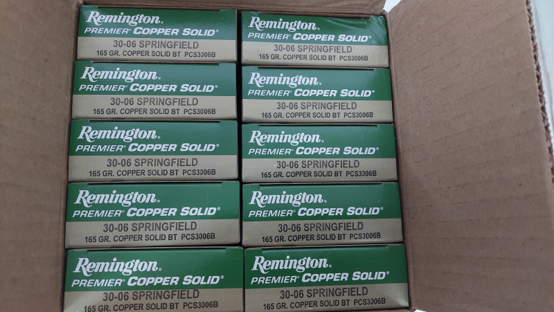 Verkaufe 200 Schuss Remington Premier Copper Solid 30-06 bleifrei mit 165gr. Geschoss nach Kaliberwechsel. Das Geschoss ist laut div. Testberichten mit dem GMX vergleichbar, die Energiewerte und V100 sind kernig. Die Munition wurde im Großkarton gelagert.