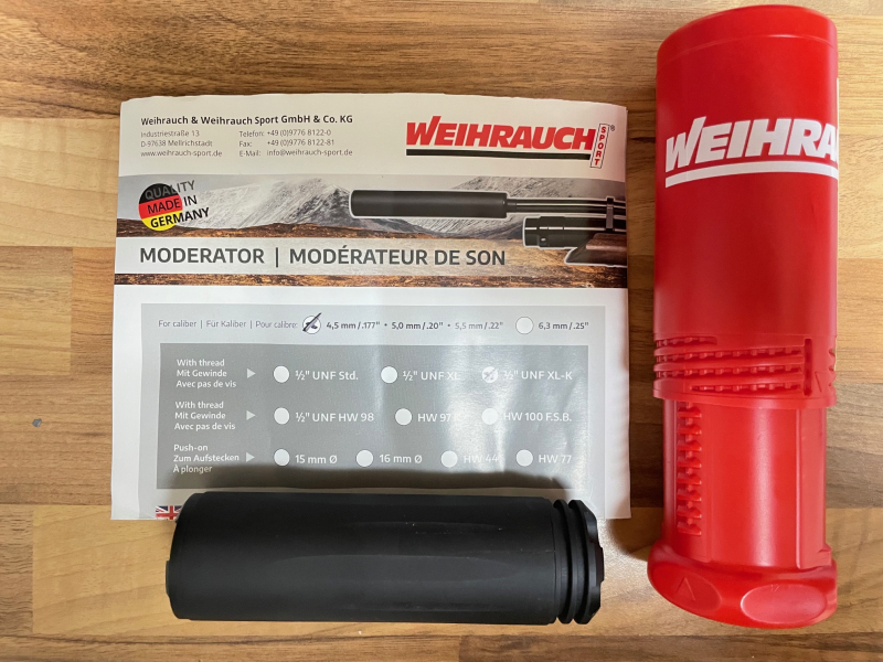 Schalldämpfer der Fa.Weihrauch mit F-Kennzeichnung nur für freie Druckluftwaffen mit F-Kennzeichen. Privatverkauf ohne Garantie und Rücknahme.