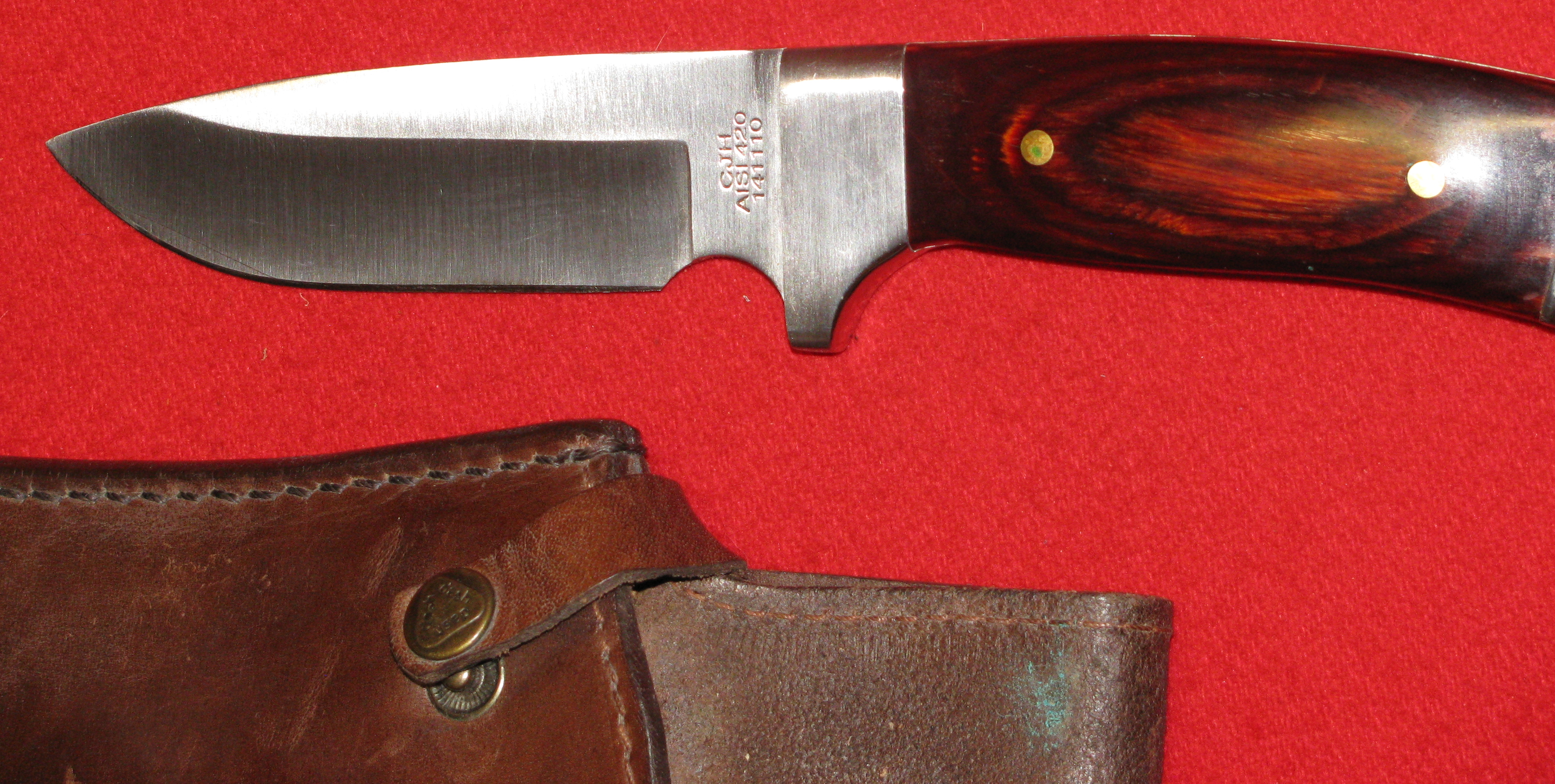 Zum Verkauf kommt ein Jagdmesser von C J H / Herberts mit Lederscheide