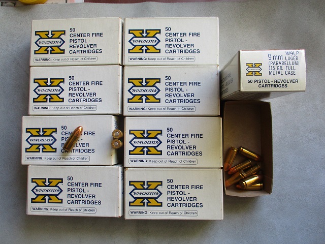 Ich biete Restmenge aus Nachlass: 400 Schuss 9 mm Luger, 115 gr Tombak-VMR, Winchester, Bodenstempel W-W, wie abgebildet. Patronen sind ca. 20 bis 30 Jahre alt. Ich habe einige verschossen. Sie sind stark und laut. Da ich selbst Gieße und Wiederlade erreiche ich mit meinem 143 gr- Geschoss und 3,5 gr N330 schon den DSB-MIP bei Unterschall und will diesen Restposten nicht mehr verschießen.