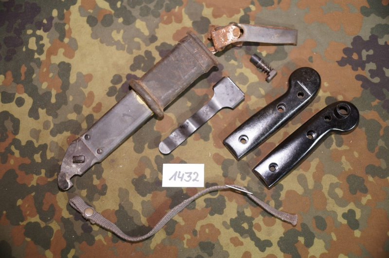 Achtung aufgepasst: original Bajonett Ersatzteile Set von der AK47 / AKM. Aus ehemaligen NVA-Beständen. Zustand, siehe Foto. Sie erhalten exakt die abgebildeten Ersatzteile. VERKAUF AUFGRUND DES ZUSTANDS AUSDRÜCKLICH ALS DEFEKT! Beachten Sie auch unsere weiteren Auktionen. Versandkosten ausserhalb Deutschlands 22 Euro pauschal. Und nun: viel Spass beim Bieten.
