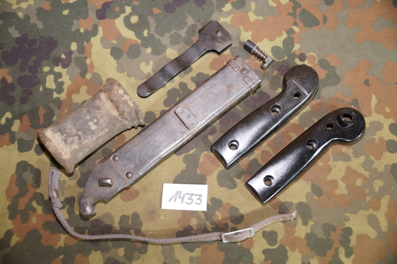 Achtung aufgepasst: original Bajonett Ersatzteile Set von der AK47 / AKM. Aus ehemaligen NVA-Beständen. Zustand, siehe Foto. Sie erhalten exakt die abgebildeten Ersatzteile. VERKAUF AUFGRUND DES ZUSTANDS AUSDRÜCKLICH ALS DEFEKT! Beachten Sie auch unsere weiteren Auktionen. Versandkosten ausserhalb Deutschlands 22 Euro pauschal. Und nun: viel Spass beim Bieten.