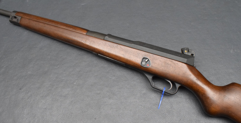 Druckpunktabzug, herausnehmbares 3-Schuss Magazin, kann mit einer original HK SL7 Zielfernrohrmontage montiert werden. Holzschaft mit brünierter Stahlschaftkappe.