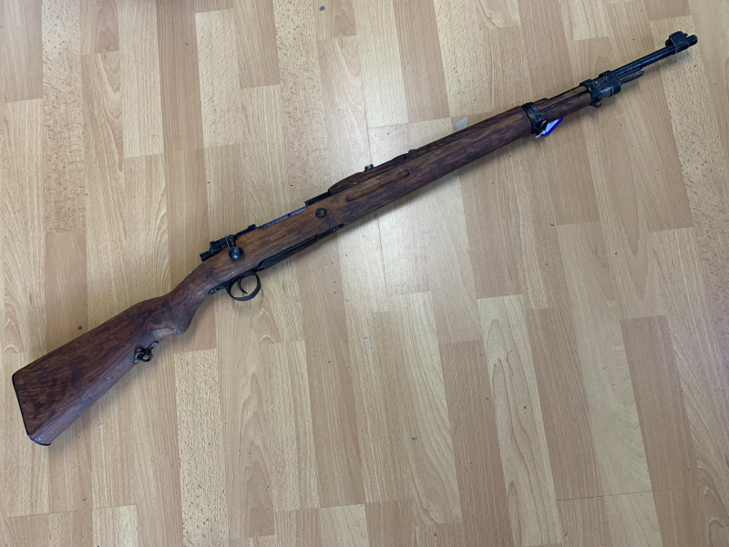 Verkaufe interessanten K98, welcher aus einem Kar.98AZ umgebaut wurde. Manche Teile haben WAA-Abnahmestempel. Kein gültiger Beschuß, deshalb nur für Sammler oder Händler. Viele Rostnarben und etwas klapprig, deswegen als „Defekt“ deklariert. Waffe scheint zu funktionieren, schiessen sollte man sie aber erst, nachdem ein Büchsenmacher sie überprüft hat.