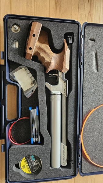 Luftpistole Walther 400 Carbon mit verstellbaren Griff Größe S, in einem sehr gutem Zustand, Pressluftkartusche bis 06/2028 verwendbar,