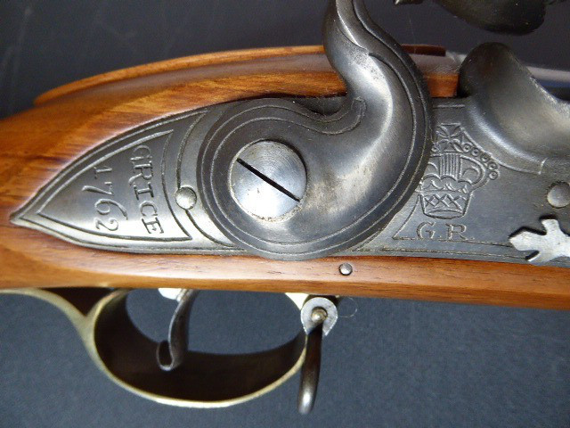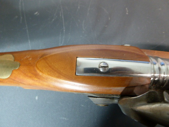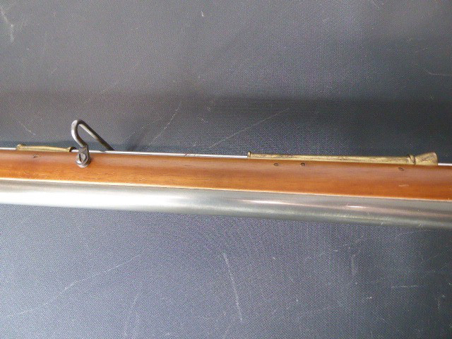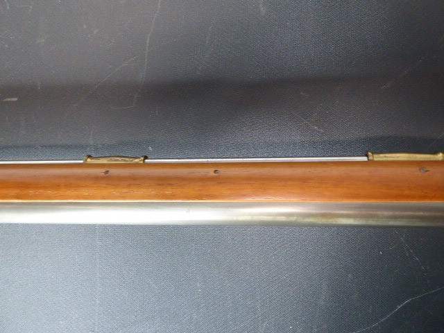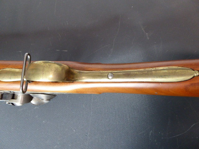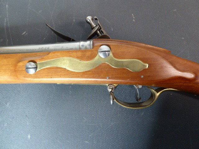 Aus meiner Sammlung gebe ich, ein älteren Nachbau Brown Bess Steinschloss Infanterie Gewehr Modell 1762 PEDERSOLI Italien Fertigung ab. Eine älter Fertigung, die in dieser Qualität nicht mehr so schnell zu bekommen ist, es ist nicht mehr aus Italien zu bekommen. So wie es aussieht wurde das Teil auch nicht Benutzt, sondern nur als Sammelstück hingelegt. Schäftung aus ausgesuchten Holz. mit Messingbeschläge ohne Risse oder Durchbrüche. Das Teil ist voll funktionstüchtig, lässt sich auf zwei Stellungen spannen und sauber abschlagen. Glatter Lauf mit Hersteller und Beschussmarken und originalem Ladestock. Das Teil ist im sehr Guten Sammelwürdigen und zu Gebrauchenden Zustand. Alles andere entnehmen Sie Bitte den Fotos. Leider ist das Teil Länger als 120 cm, deshalb kann ich es auch nur als Sperrgut für 47,00 Euro versenden. Gesamtlänge: 148,5 cm, Lauflänge: 107 cm, Kaliber: 19 mm. Kann zu jederzeit bei mir besichtigt werden. Privatauktion keine Rücknahme und Garantie.