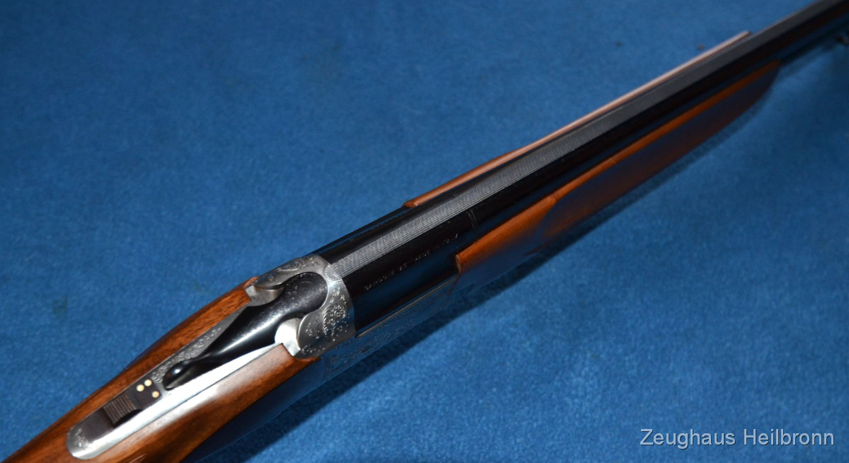 Flinte in einem sehr schönen Zustand, Lauf blank, System dicht, volle Funktion, schön gravierte Basküle.