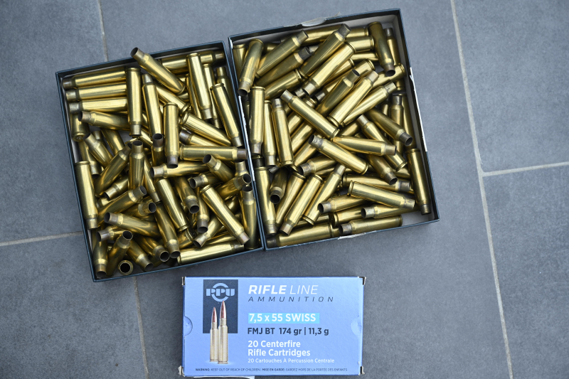 Gesamt 169 Hülsen 7,5 x 55 Swiss