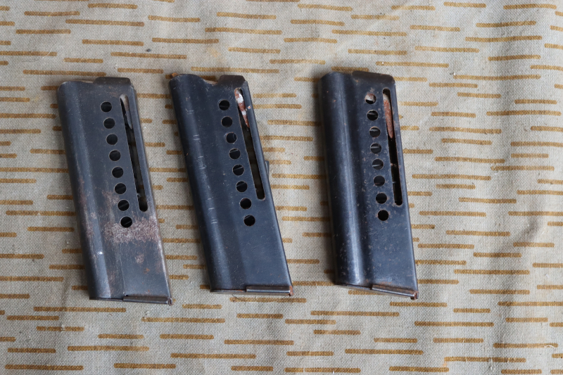 Vier Stück .22lfb Magazine für Voere oder Anschütz Büchsen. Flugrostig. Voll funktionsfähig.