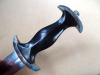 Sammlungsauflösung: Zeitgenössisch originaler, zusammengehöriger und ungeöffneter später Dienstdolch vom Solinger Hersteller Gottlieb Hammesfahr RZM M7/67-1940. Klinge ungekürzt 220 mm lang in sehr gutem Zustand, Griff Ebenholz makellos mit alt unbeschädigt einliegenden Emblemen, Parierstangen und Kopfschraube Alu mit Resten der Vernickelung, Scheide mit vernickelten Stahlbeschlägen nachlackiert, Schrauben unversehrt. Eine sehr seltene RZM-Variante dieses Herstellers. Originalitätsgarantie für mich als Blankwaffenexperten ist selbstverständlich!