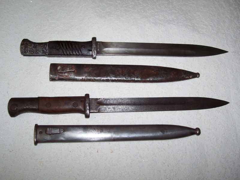 Sie bieten auf 2 98k Bajonette für Bastler bei einem geht der Drücker,Beschriftet mit F.W. Höller Klingenrücken mit 40 gestempelt.DBei dem mit Holzgriff ist der Drücker fest,die Beschriftung kann ich nicht lesen. Kein Versand ins Ausland.