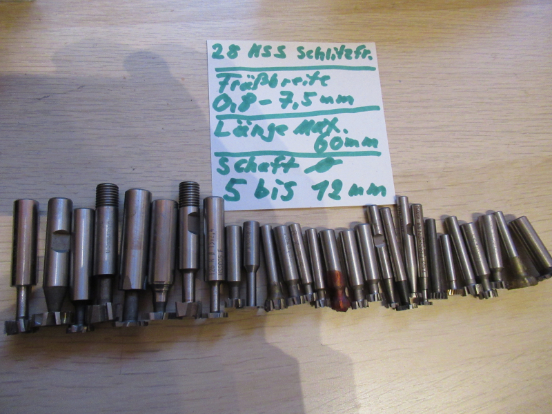 28 HSS und HSS-Co Schlitzfräser im Top Zustand und in Industriequalität .Die Maße können vom Foto abgelesen werden.