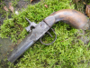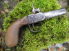 Versteigere kleine Weinberg-oder Taschenpistole, Perkussion, Länge 17,5 cm, Kal. 15 mm, Zustand siehe Bilder, Mechanik funktioniert, Piston ist platt.