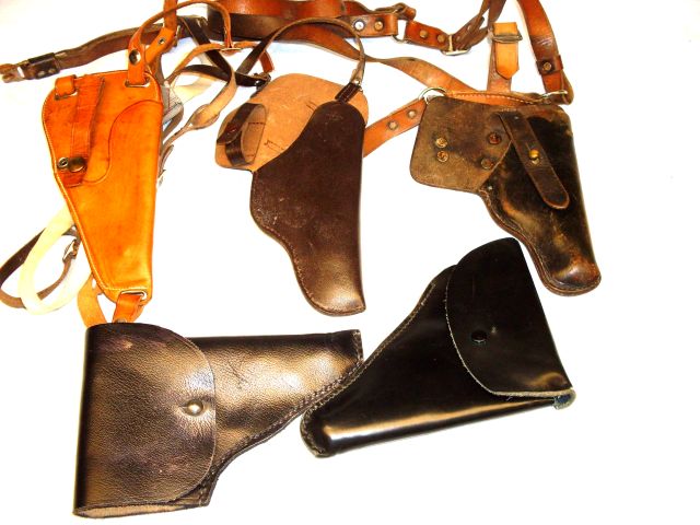 Sie bieten hier auf ein Konvolut von 5 Stück verschiedenen Holstern und Schulterholster für Walther PP. Gemischter Zustand von leicht bis stark getragen. Zustand gemäß Fotos. Details und Fragen bitte vor Ablauf der Auktion klären. Farbabweichung durch Blitzlicht möglich. Privatverkauf kein Rückgaberecht und Gewährleistung. Der Bieter erklärt sich durch sein Gebot mit diesen Bedingungen einverstanden. Verkauf und Versand nur innerhalb von Deutschland mit Hermes Paket versichert.