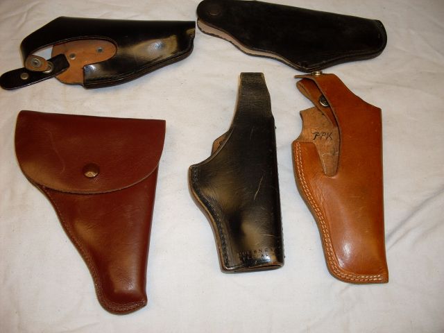 Sie bieten hier auf ein Konvolut von 5 Stück verschiedenen Holstern für Mod. Walther PPK. Gemischter Zustand von leicht bis stark getragen. Zustand gemäß Fotos. Details und Fragen bitte vor Ablauf der Auktion klären. Farbabweichung durch Blitzlicht möglich. Privatverkauf kein Rückgaberecht und Gewährleistung. Der Bieter erklärt sich durch sein Gebot mit diesen Bedingungen einverstanden. Verkauf und Versand nur innerhalb von Deutschland mit Hermes Paket versichert.