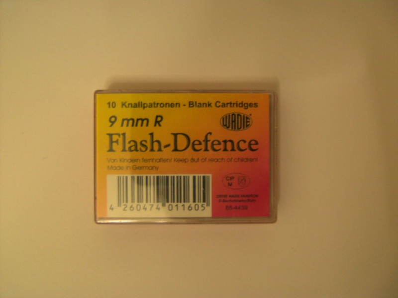 Zum Verkauf steht je 1 Packung Flash-Defence Abwehrmunition der Firma Wadie. Kaliber 9mmR (.380). Deutsches Qualitätsprodukt. Stark geladene Munition, lauter Knall und starkes Mündungsfeuer. Bitte beachten Sie auch meine anderen Auktionen. Bei Bestellung mehrerer Artikel fällt selbstverständlich nur einmal Porto an.