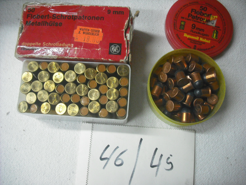 Sie bieten auf 46 Schuss 9 mm Flobert- Schrotpatronen mit Metallhülse und 45 Schuss Flobert Patronen 9 mm Rundkugel