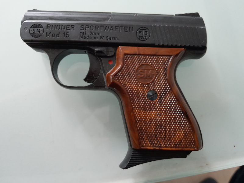 Schreckschusspistole SM Rhöner Modell 15, Kal. 8 mm Knall, PTB 83/2. Zustand wie auf Bildern zu sehen.