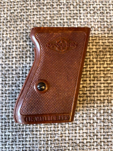 Ich biete hier einen originalen, braunen, MANURHIN-Kunststoffgriff, incl. der Befestigungsschraube, für das Mod. Walther-PPK (Lic.) an. Meiner Meinung ist der Griff neu und in einem sehr ansprechendem Braunton. Der Versand erfolgt mittels versichertem Paket und Sendungsnummer. Die Versandkostenpauschale für Deutschland beträgt 10,- Euro und für die EU 22,- Euro. Privatverkauf ohne Garantie und ohne Rückgaberacht.