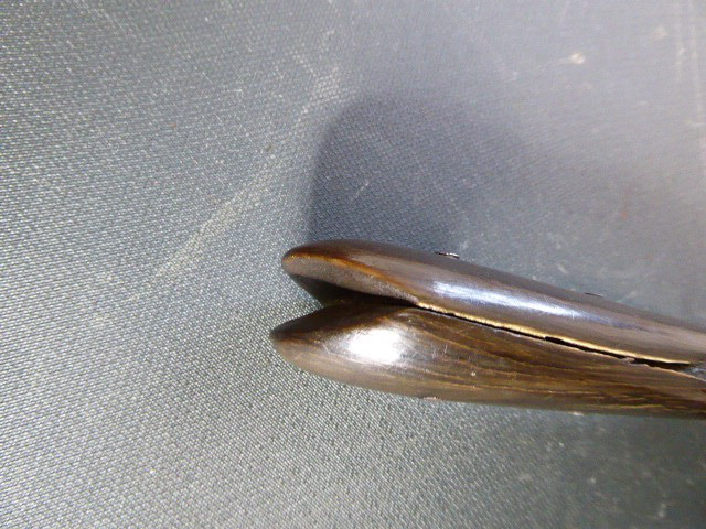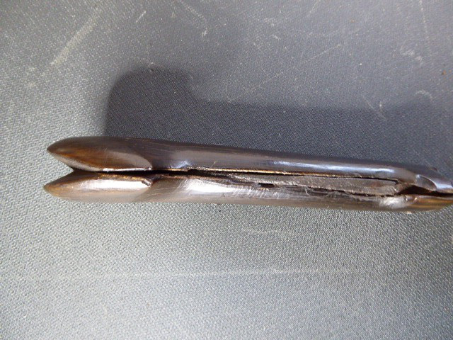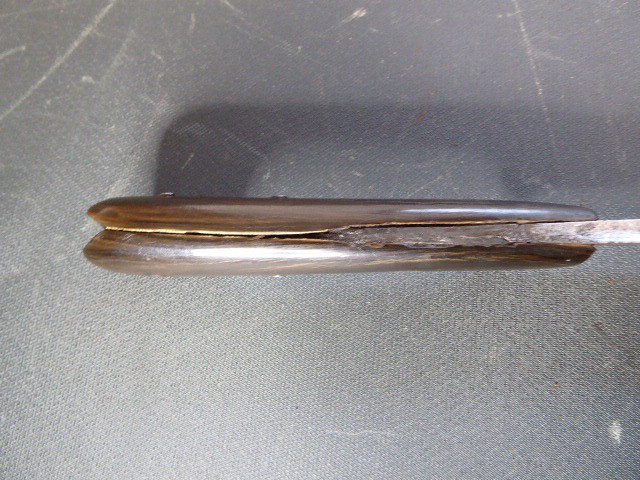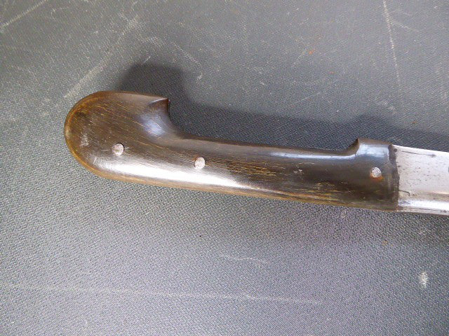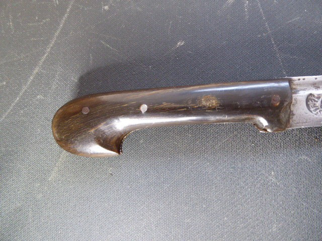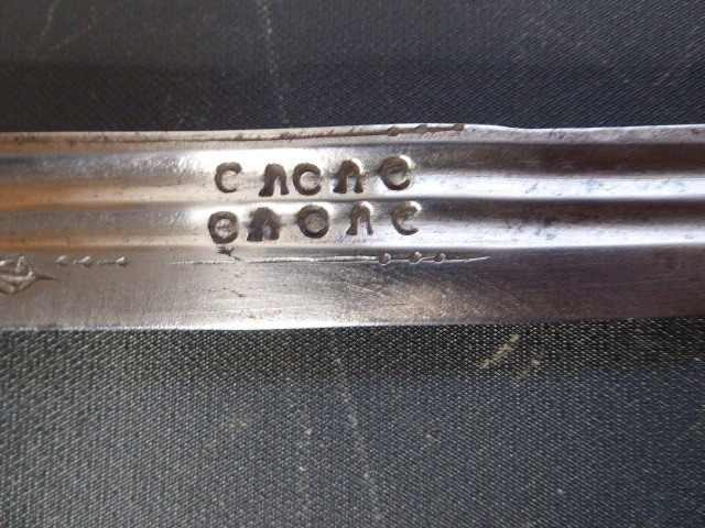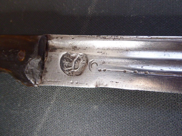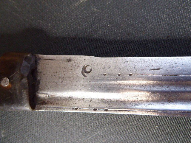 Aus meiner Sammlung gebe ich, eine alte 18-19 Jh. Kaukasus Schaschka sehr leicht ca. 440 Gramm ohne Scheide ab. Gefäß zwei Hornschalen mit drei Nieten befestigt. Hochwertige Einschneidige Klinge, mit Meistermarken und Punzen, beidseitig zwei schmale Kehlungen, Rücken der Klinge im oberen drittel auch gekehlt. Das Teil ist aus der Zeit im Guten Sammelwürdigen Zustand. Alles andere entnehmen Sie Bitte den Fotos. Gesamtlänge: 98 cm, Klingenlänge: 84,3 cm, Klingenbreite: 2,8 cm. Gesamtgewicht ca. 440 Gramm. Kann zu jederzeit bei mir besichtigt werden. Privatauktion keine Rücknahme und Garantie.