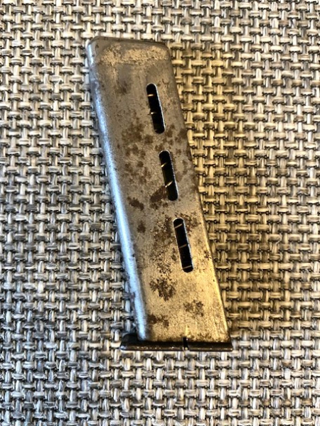 Ich biete ein originales Magazin für die Pistole, Mauser, Mod. 1910, 14, 34, Kal. 6,35 mm an. Die genaue Modellbezeichnung ist mir leider nicht bekannt. Auf dem Magazinboden befindet sich das Mauser-Logo in Form einer Tonne. Das Magazin lässt sich einwandfrei befüllen mit perfekter Feder. Die altersbedingten, nur oberflächlichen Flecken lassen sich durch behutsame Reinigung leicht entfernen. Aktuell befindet sich das Magazin im Originalzustand. Der Versand erfolgt mittels versichertem Paket und Sendungsnummer. Die Versandkostenpauschale beträgt für Deutschland 10,- Euro und für die EU 22,- Euro. Privatverkauf ohne Garantie und ohne Rückgaberecht.
