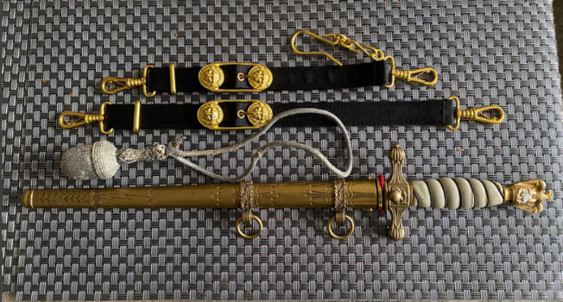Ein Kriegsmarinedolch . Kein EU-Recht oder Rücknahme , da Privatauktion. Gebrauchter , mit Altersspurener Zustand . Stellt Fragen bitte vorher ! Frühes Firmenlogo der Fa. Hörster . Beidseitige Klingenätzung Anker und Seeschlange . Drücker ok . Dazu Gehänge und Portepee . Griff mit Holzkern.
