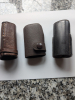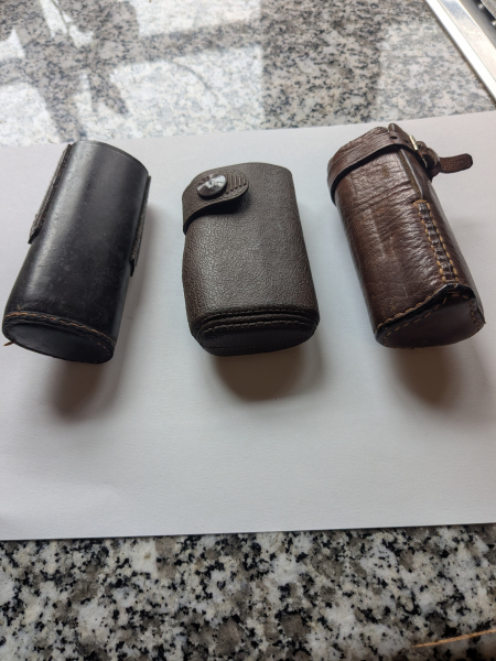 Bilder sagen mehr als 1000 Worte. 3 verschiedene Mündungsschoner, 2 x Leder, 1 x Kunststoff, 1 x für schlanken Drilling oder Bockdrilling, 2x Flinte oder Bockbüchsflinte.