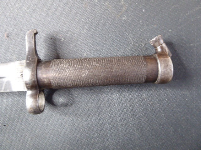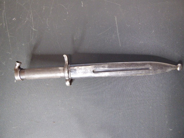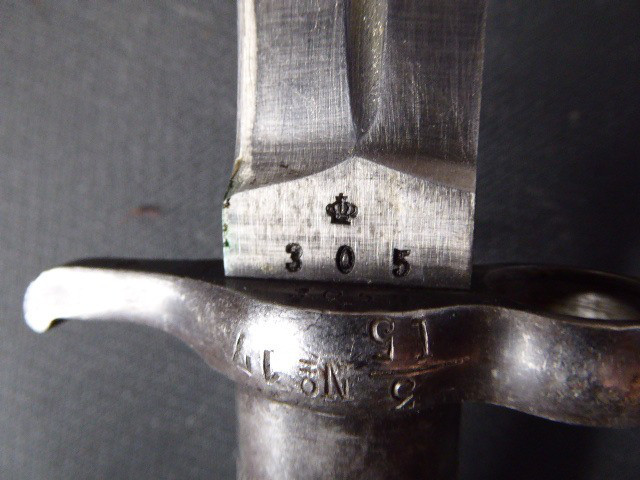 Aus meiner Sammlung gebe ich, ein altes Spanisches Bajo mit Stahlscheide Scheide Klinge gestempelt 305 unter Krone ab. Griff rund aus Eisen. Stabile zweischneidige Klinge einseitig mit C unter Krone, andere Seite 305 unter Krone. Scheide Eisen. Das Teil ist im Guten Sammelwürdigen Zustand. Alles andere entnehmen Sie Bitte den Fotos. Gesamtlänge: 35 cm, ohne Scheide: 33 cm, Klingenlänge: 21 cm, Klingenbreite: 2,5 cm. Kann zu jederzeit bei mir besichtigt werden. Privatauktion keine Rücknahme und Garantie.